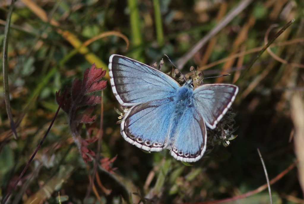 Friday 29th. This year has been so much better for migrant moths than 2021 and the latest addition last night was our first Scarce Bordered Straw for Dorset, accompanied by the first Dusky Thorn of the year. Karen had much of the morning to spare, so we headed off to Portland for a walk along the Weston cliffs. Wall was the most prolific butterfly, with a supporting cast of Chalkhill and Common Blues, a Brown Argus and numerous burnet moths; Narrow-bordered 5-spots were all worn and past their best, while 6-spots were much fresher. Just as a taster, here’s a pic of my favourite British butterfly, the stunning Chalkhill Blue ….