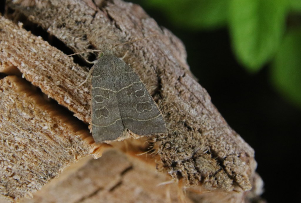 Wednesday 13th. Last night was overcast and the warmest night of the year so far, with an overnight minimum of 18.2°C, which brought 450 macros of 71 species, our highest species total since we began trapping here. These included our first Olive for Dorset, Blue-bordered Carpet, Vapourer and, on the downside of a very good night, an infestation of beetles. Olive appears to be a thinly distributed species in Dorset, with over 50% of county records coming from a single site east of Bournemouth that is planted with black poplar, a largely uncommon tree in Dorset.