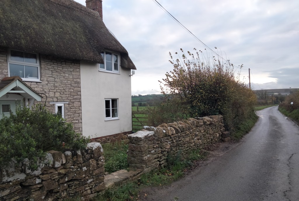 Karen has been rebuilding the dry stone wall outside the cottage over the last two months or so and here is the finished article … visible from space.